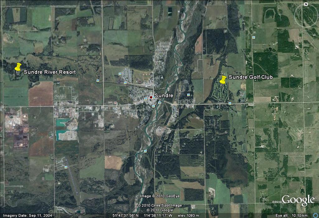 From that T junction, proceed 10 km, you will cross the Red Deer River, then on down the hill into Sundre, through town and another 4 km you arrive at Range Road 60 (RR 60). There is a little hall on the right called McDougall Flats Hall and our sign is at that corner.Turn right a half km and you are at the entrance to our resort.
